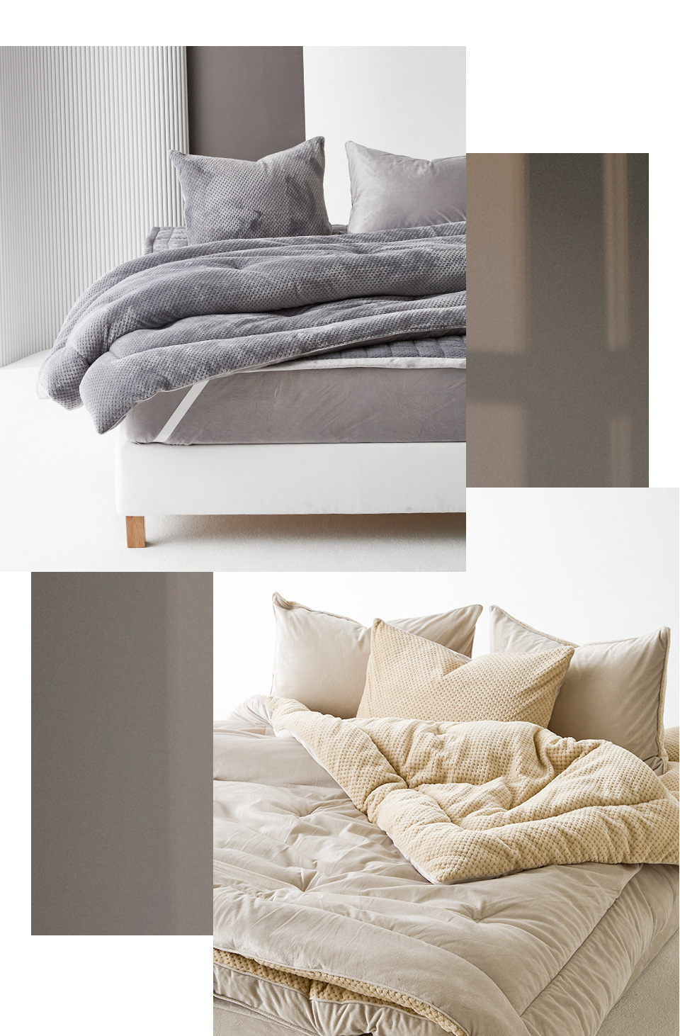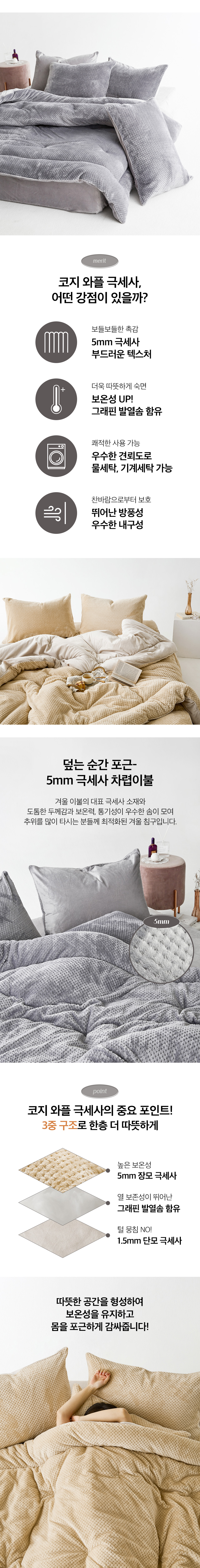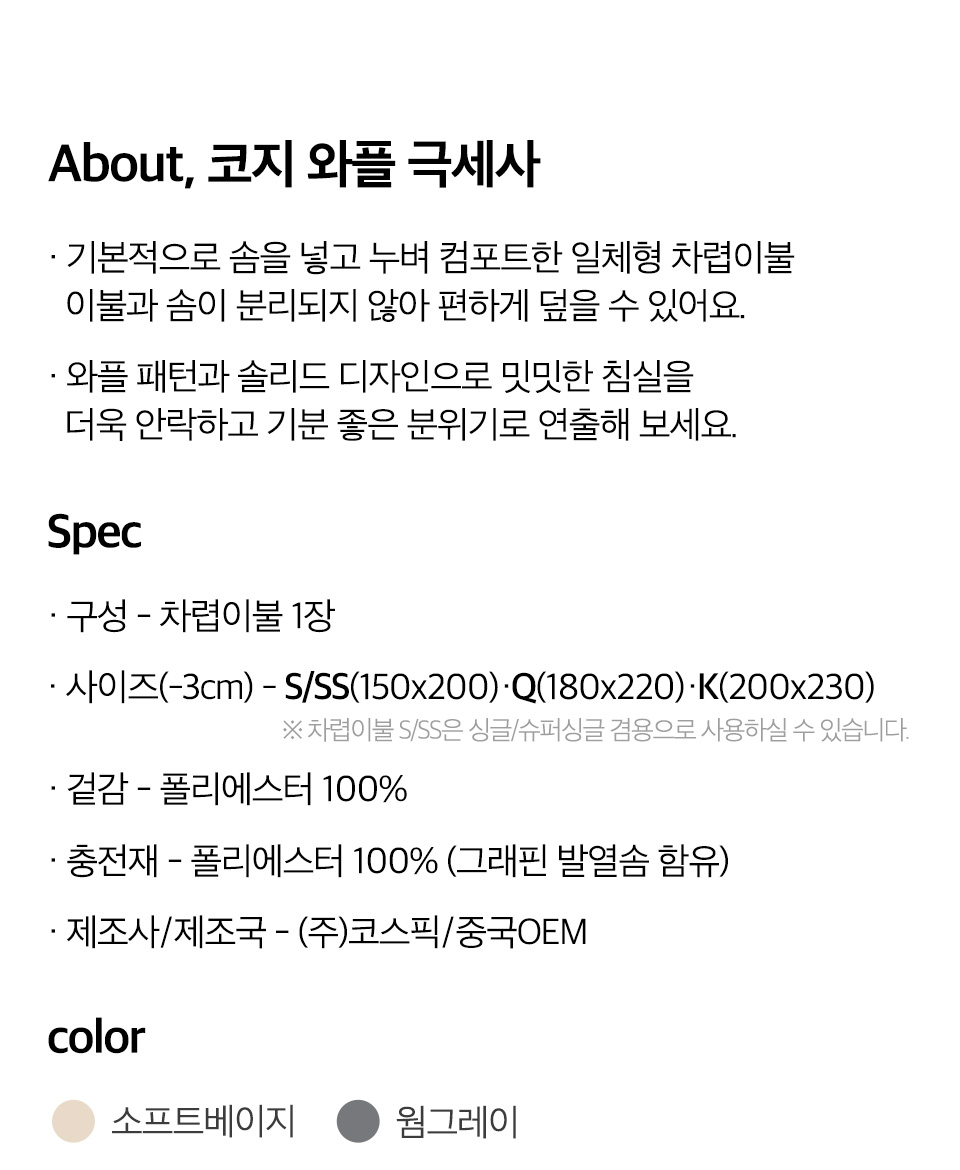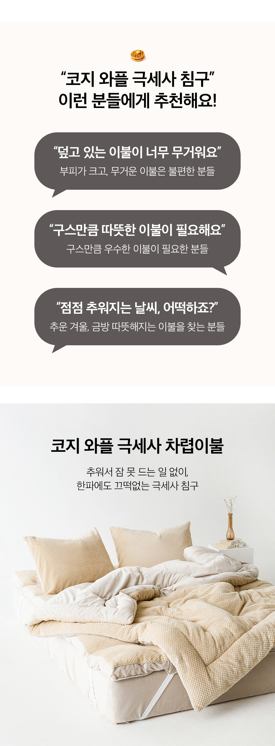 [라뽐므] 발열솜이 들어간 코지와플 극세사 겨울 차렵이불 Q(퀸)