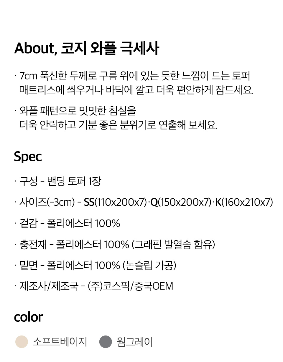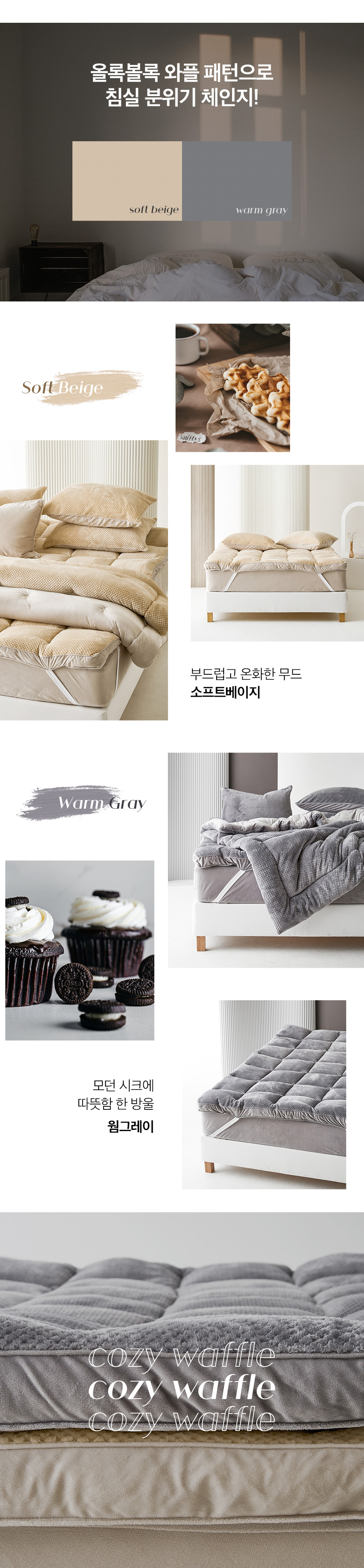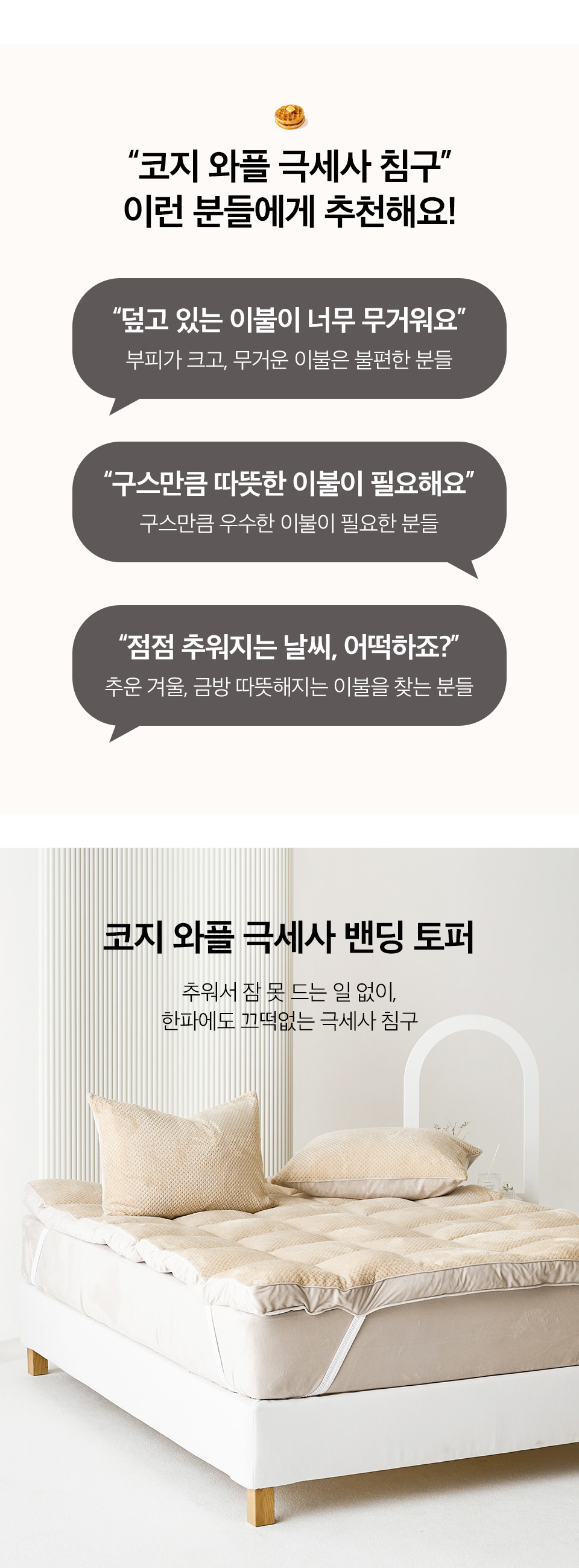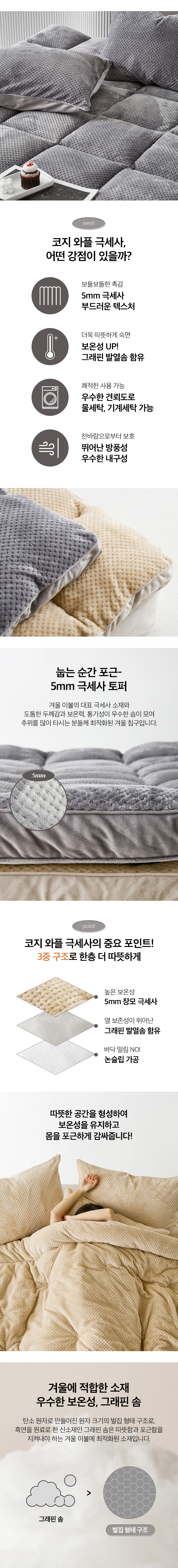 [라뽐므] 발열솜이 들어간 코지와플 극세사 겨울 다운필 토퍼 SS(수퍼싱글)