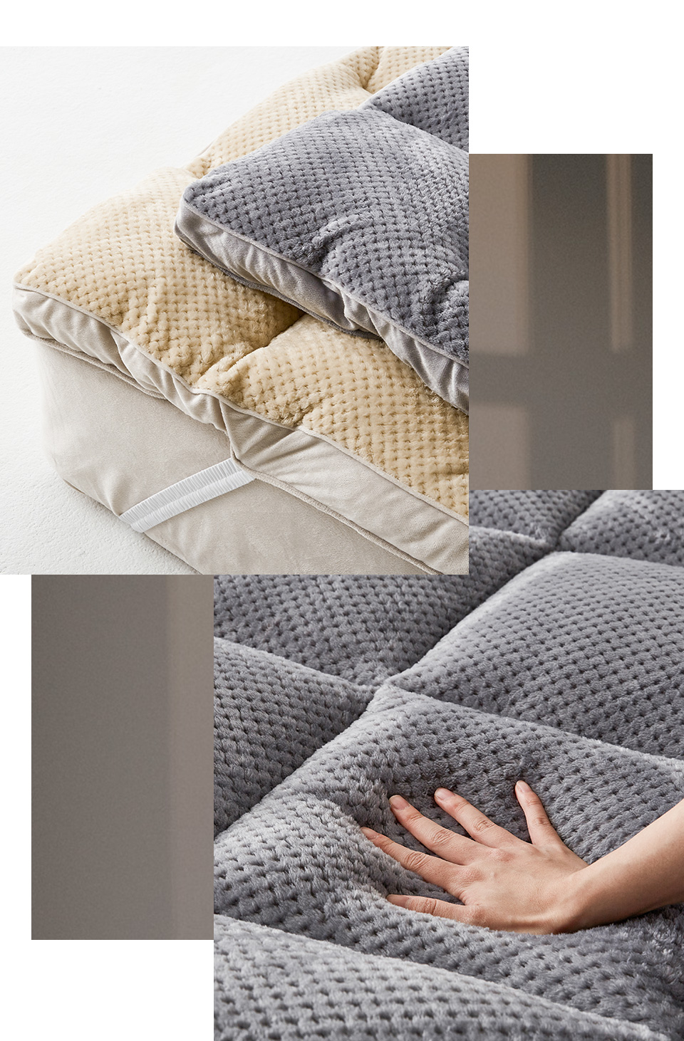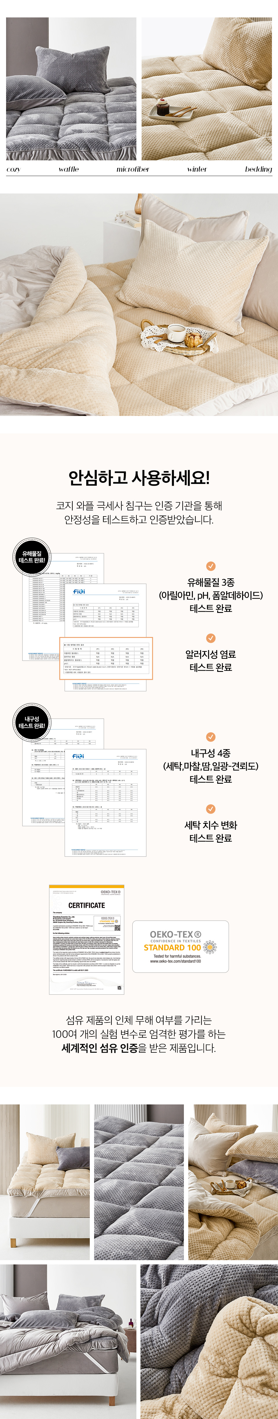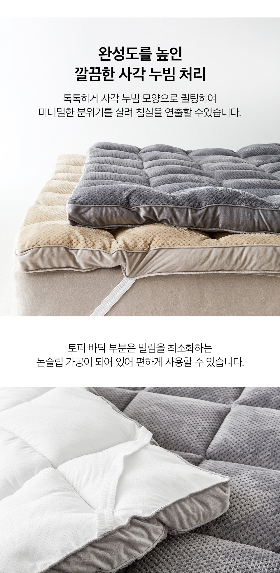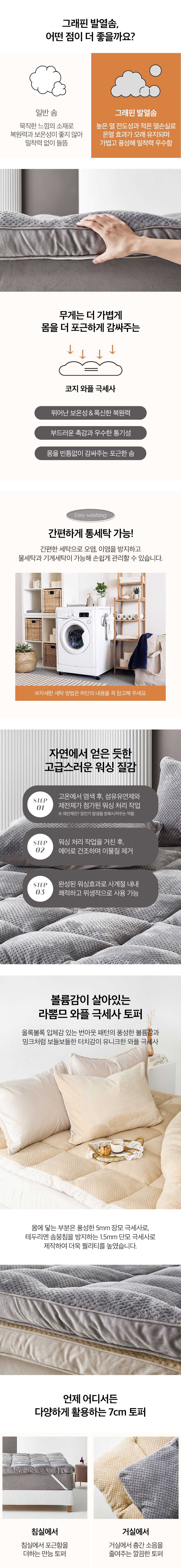 [라뽐므] 발열솜이 들어간 코지와플 극세사 겨울 다운필 토퍼 SS(수퍼싱글)
